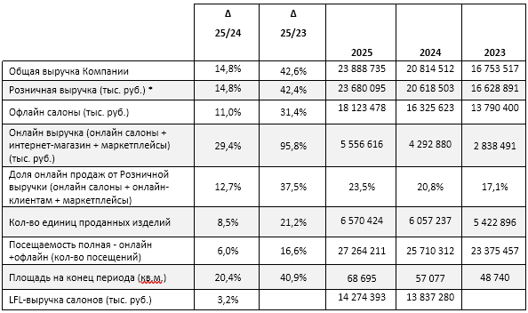 Высокая эффективность управления позволила сохранить позитивную динамику LFL-продаж в сопоставимых салонах за 12 месяцев 2025 на уровне + 3,2% к 12 месяцам 2024 года, несмотря на общую напряженную ситуацию на рынке.
